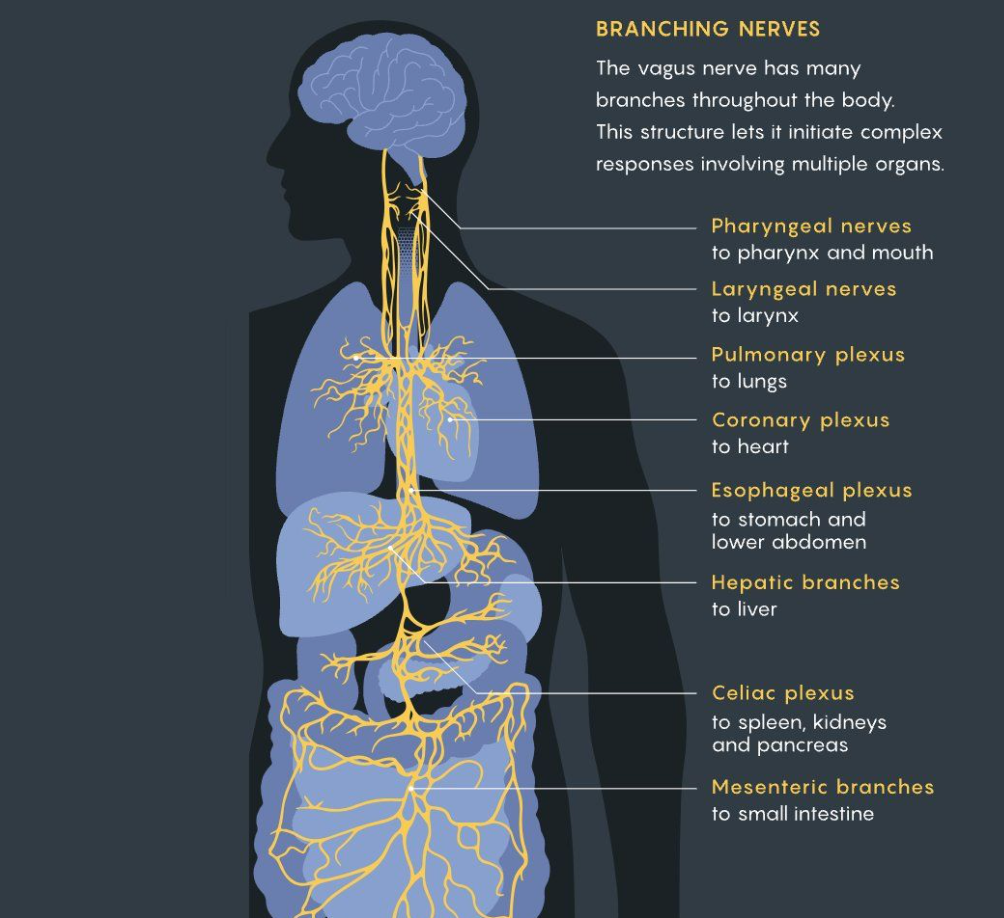 The vagus nerve is the keystone of the parasympathetic nervous system — what we at BBH call the rest and digest system, the braking system to our cortisol-driven, sympathetic accelerator. It regulates heart rate, breathing, digestion, and immune function. All without you thinking about it for a single second.